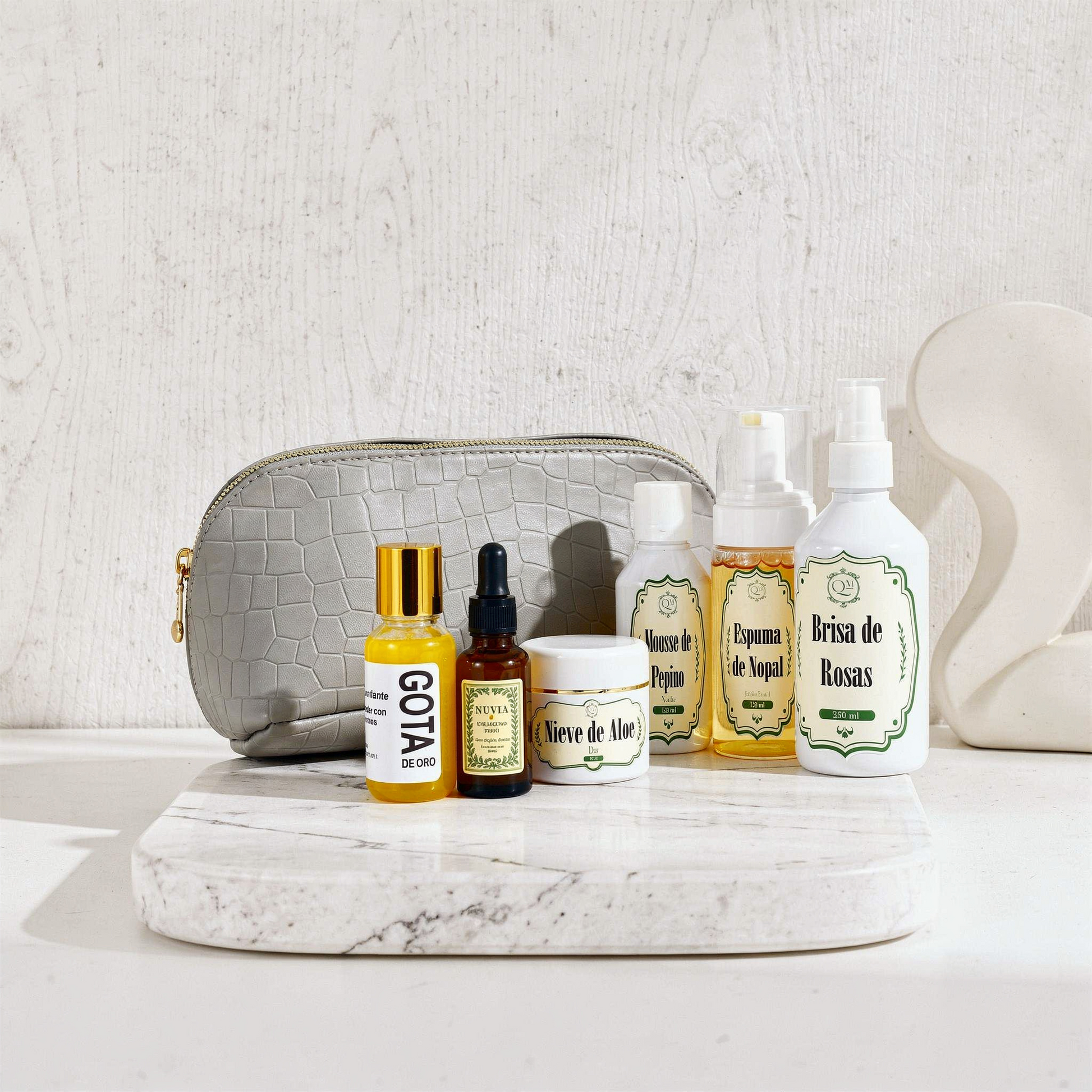 Un kit completo para que tu piel se vea y se sienta limpia, hidratada, suave y luminosa, con una rutina fácil: desmaquilla, limpia, hidrata (día/noche) y acompaña tu cuidado desde dentro.